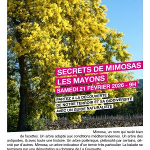 Mimosa, un nom qui revêt bien de facettes. Un arbre adapté aux conditions méditerranéennes. Un arbre des antipodes, là avec toute une histoire. Un arbre polémique, plébiscité par certains, décrié par d’autres. Mimosa, un arbre indicateur d’un terroir très particulier. La balade se terminera par une dégustation au domaine de La Fouquette. Partez à la … ...